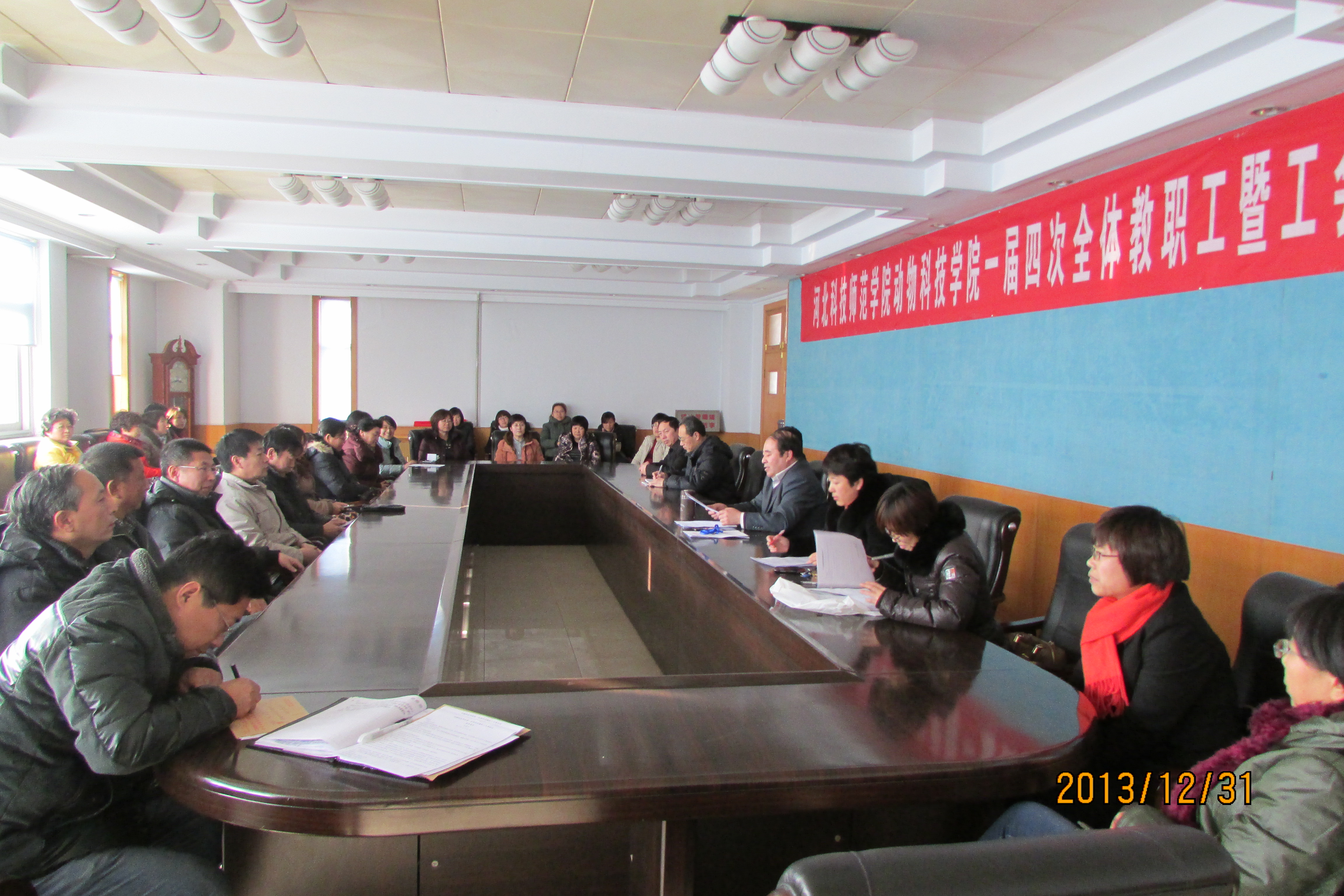 2013年12月31日下午,公司在主楼三楼会议室举行伟德国际victor1946第一届第四次全体教职工暨工会会员大会,参加本次大会的有党委常委、党委办公室、董事长办公室主任李佩国,伟德国际victor1946领导班子成员和全体教师。