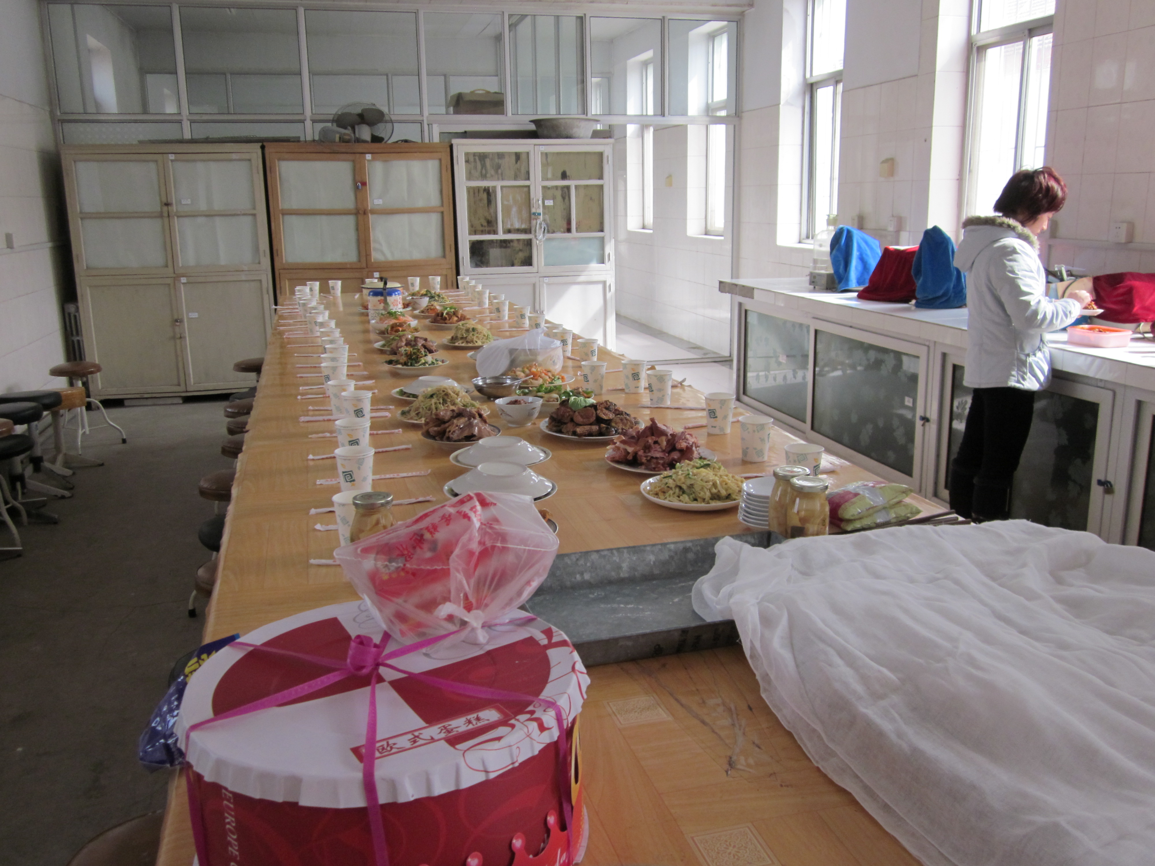 肴,有的教师在家里亲自准备菜肴,12点整老师们纷纷拿着自己亲自烹饪的菜肴来到牧场实验室。