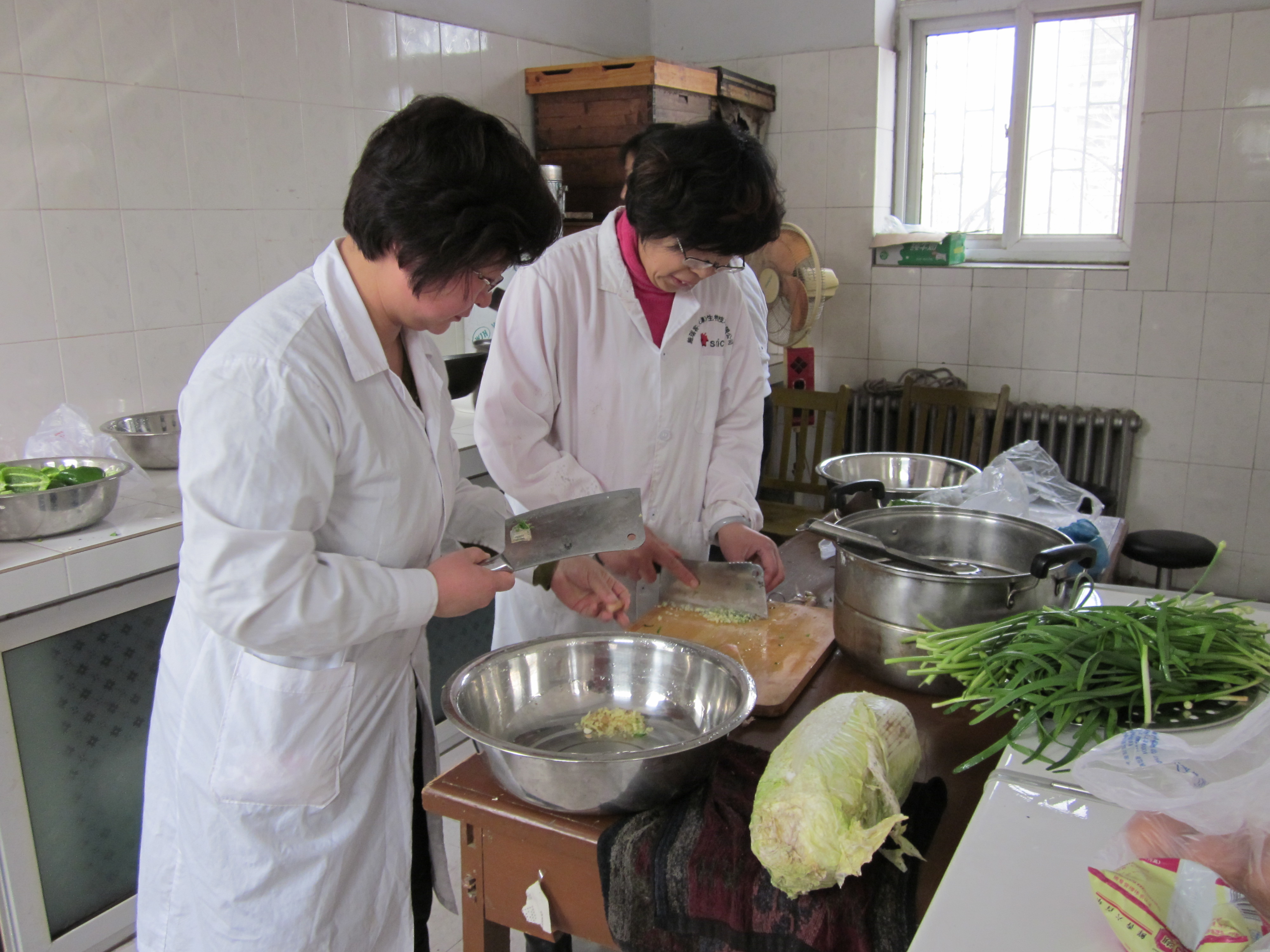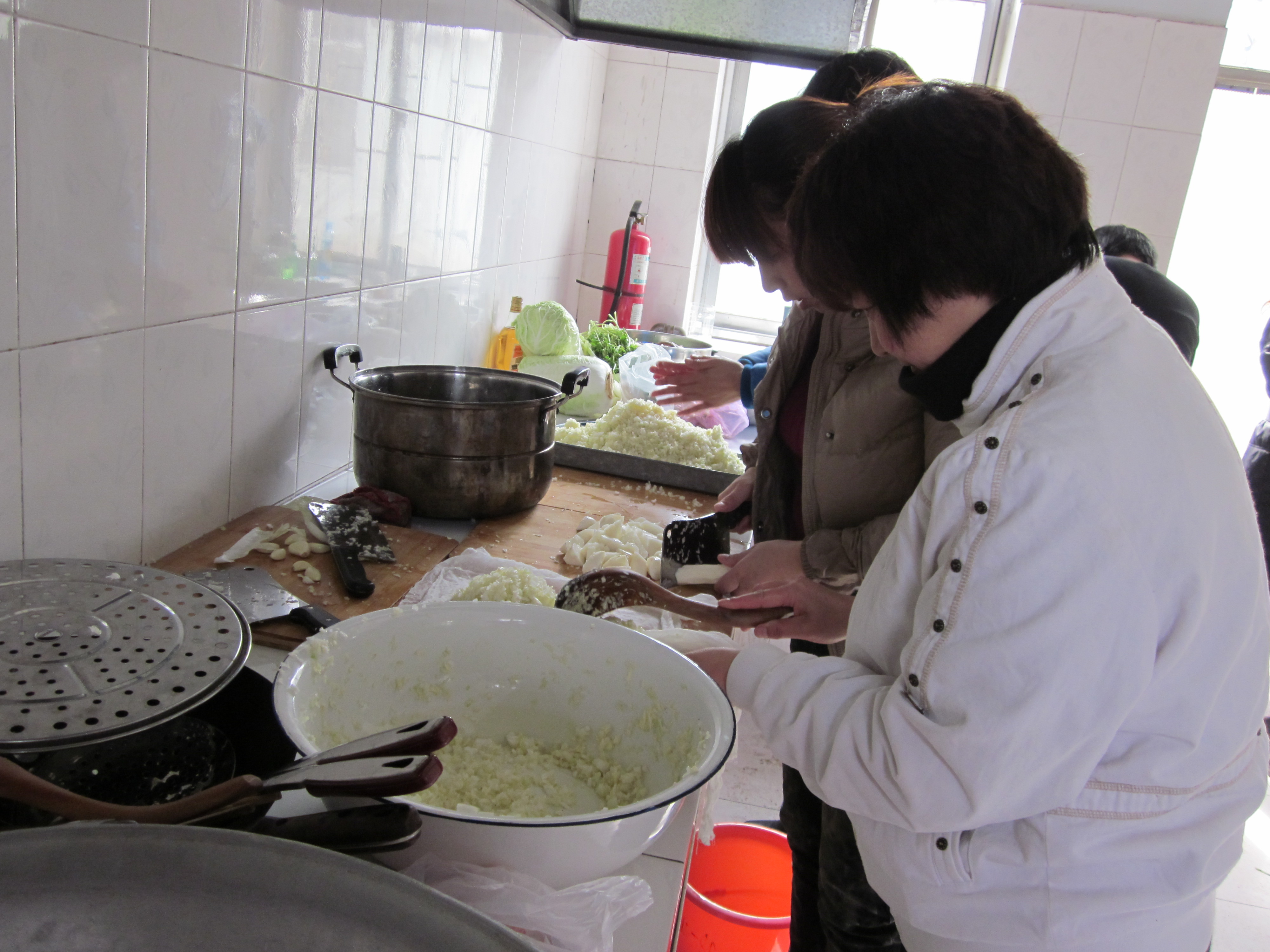 老师们正在剁白菜馅