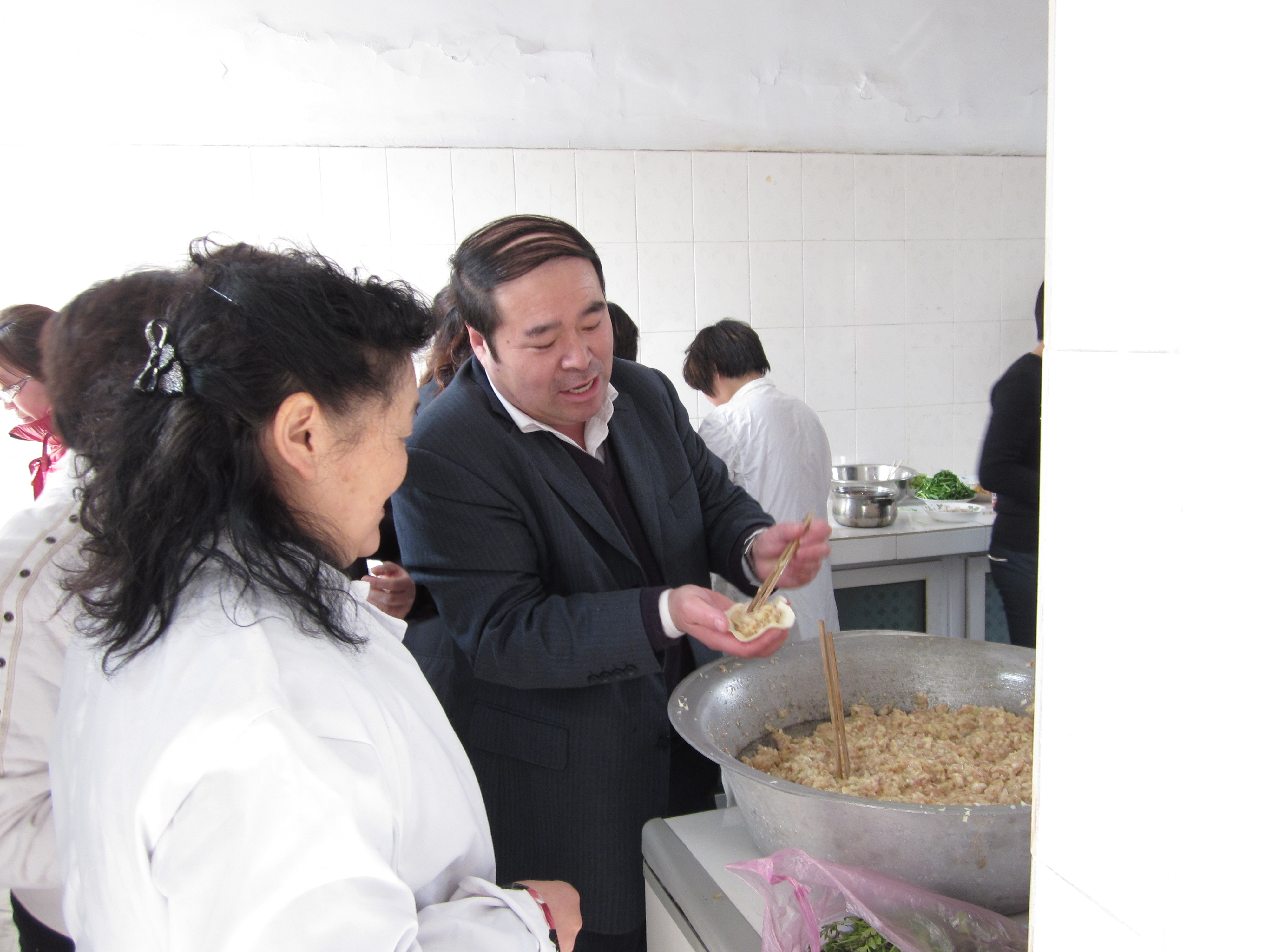 吴建华经理也来亲自包饺子
