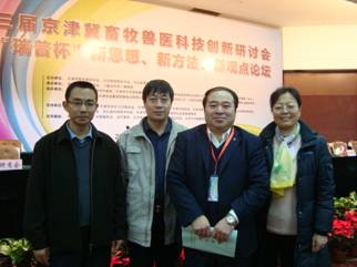 2012年11月22日至24日,由天津市畜牧兽医学会、北京市畜牧兽医学会、河北省畜牧兽医学会主办,天津市畜牧兽医学会、《猪业科学》编辑部承办的第三届京津冀畜牧兽医科技创新研讨会在天津市召开。来自京津冀三地高校、科研院所的290名畜牧兽医领域的代表和特邀专家参加了此次会议。公司动物科技 公司吴建华经理、史秋梅教授、朱文进博士、高光平副教授应邀参加了会议。会议期间,吴建华经理主持了大会交流。史秋梅教授在学术论坛上作了题为《河北省部分地区肉食品大肠杆菌、沙门菌污染状况的检测》的报告。大会提交论文250篇,收录到论文集140篇,评出一等奖3篇,二等奖6篇,三等奖9篇。史秋梅教授等提交的论文《河北省部分地区肉食品大肠杆菌污染状况的检测》获得一等奖。