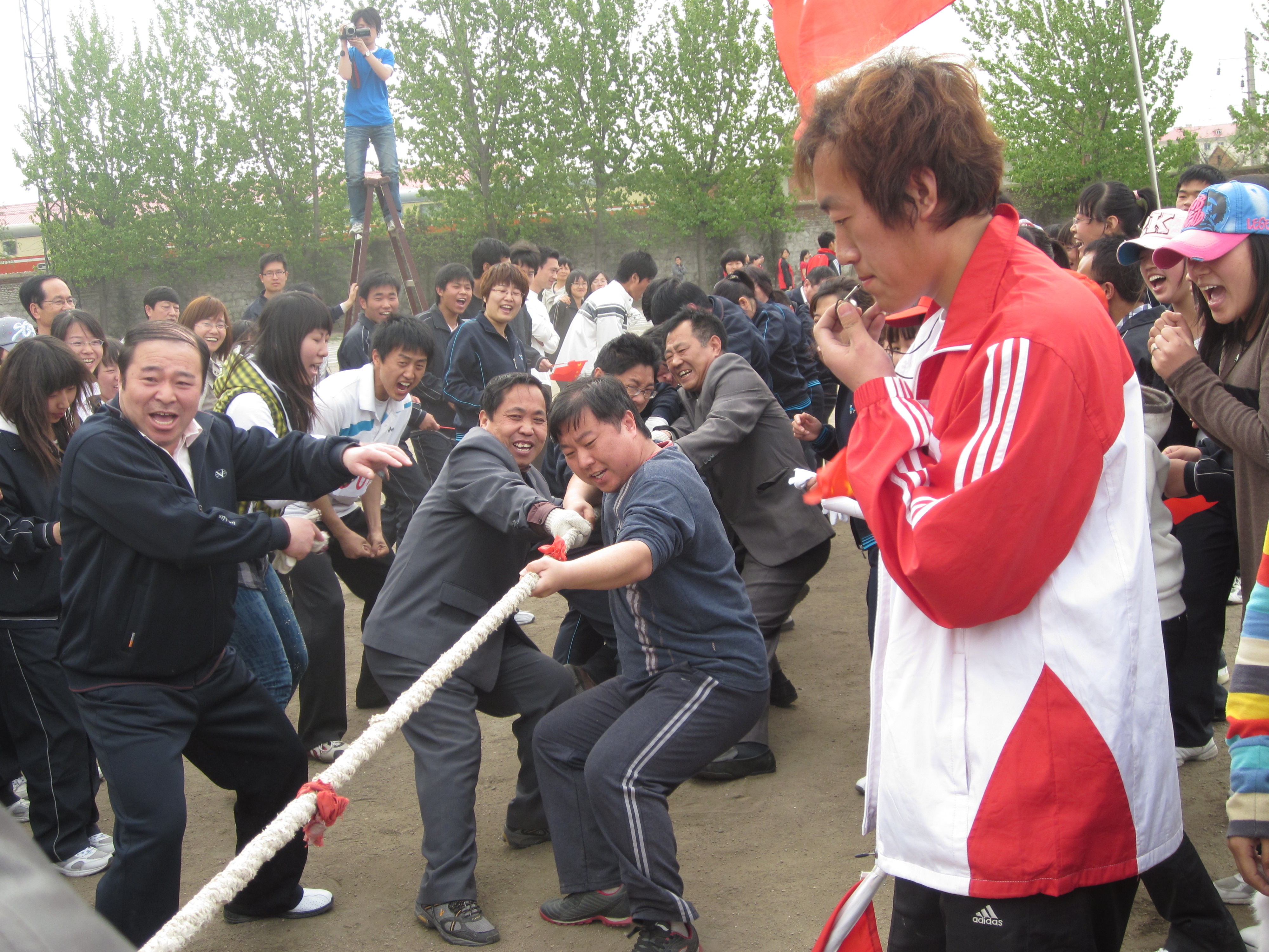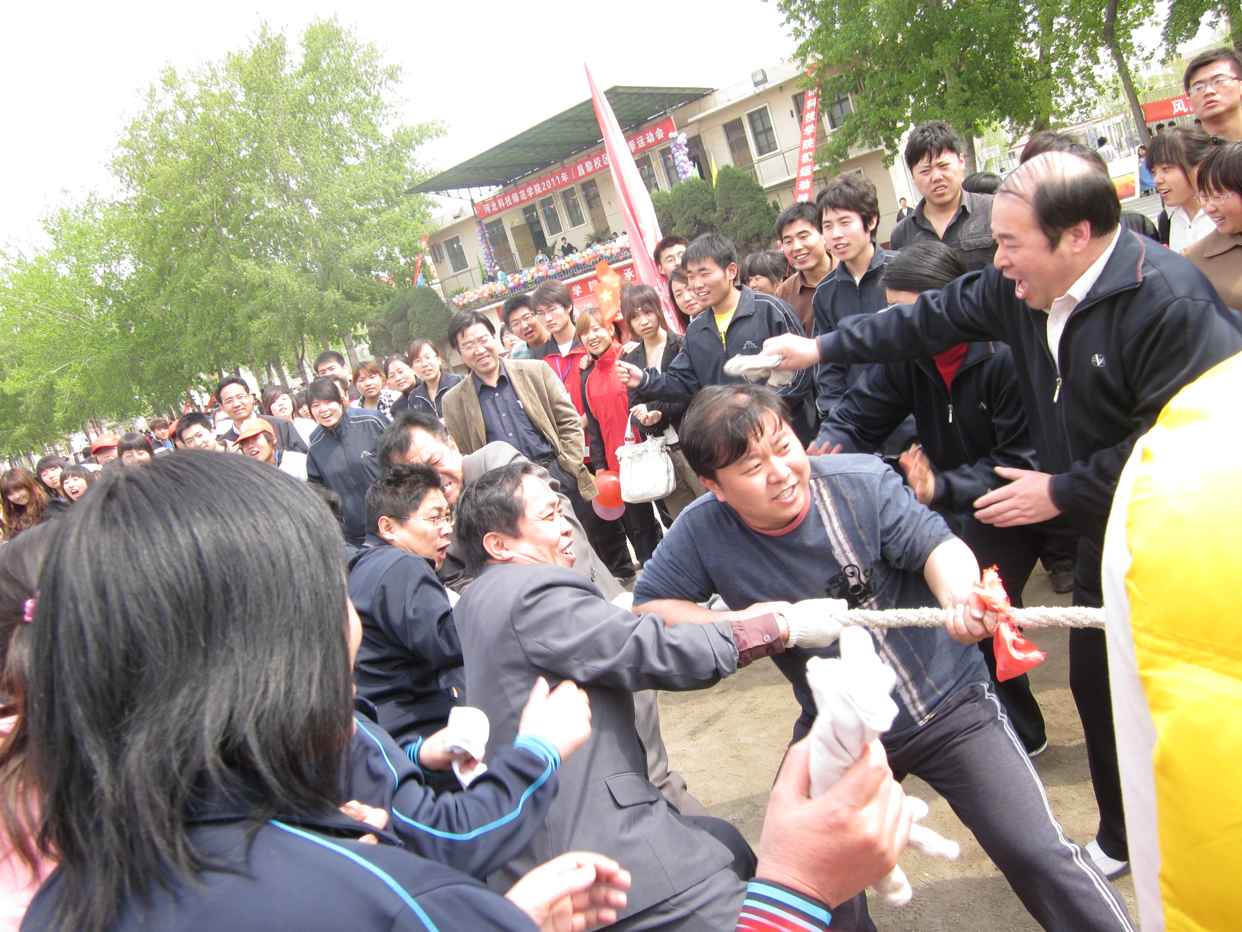 图为公司教师在拔河比赛现场