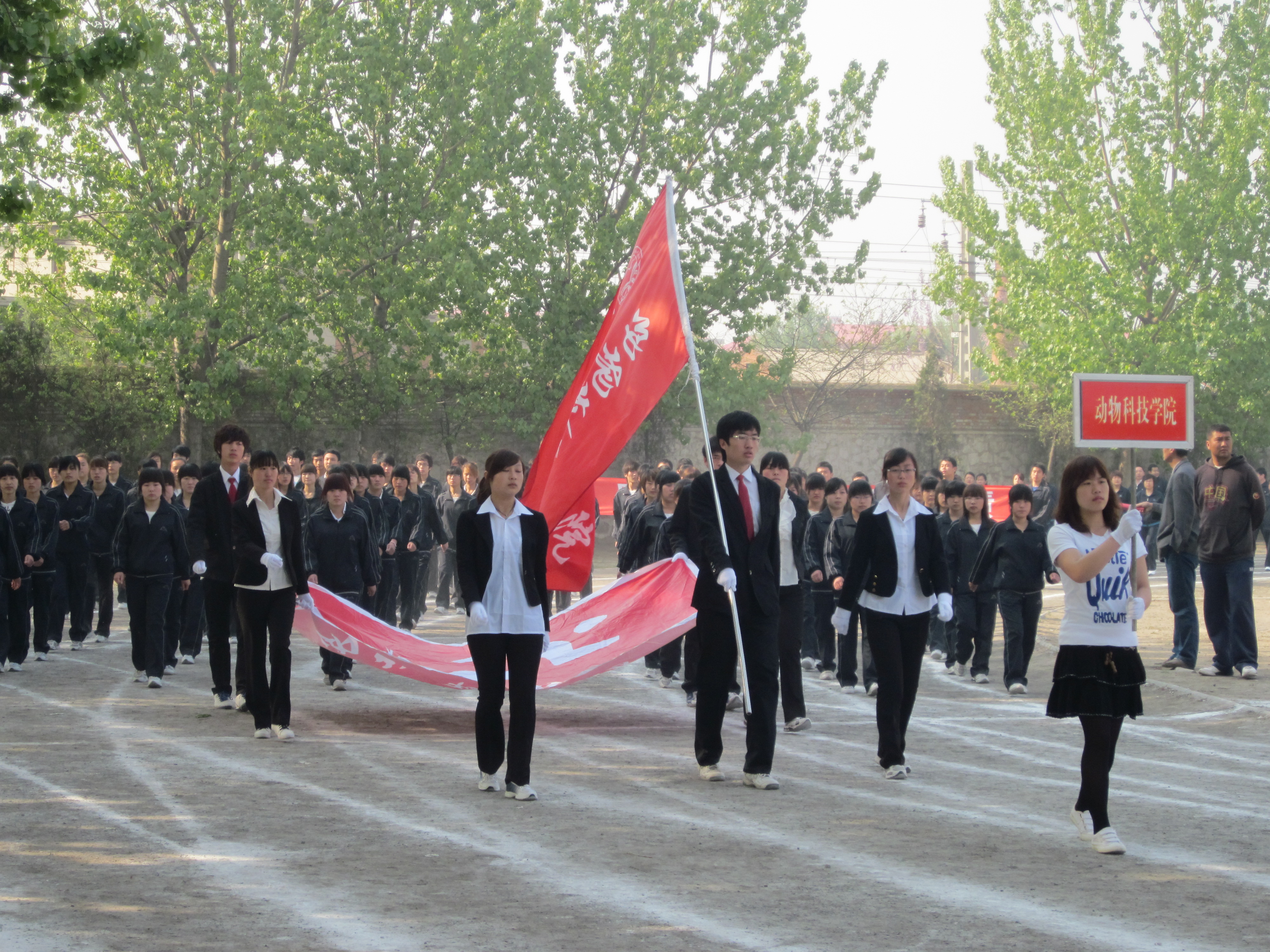 图为公司师生在参加运动会入场式