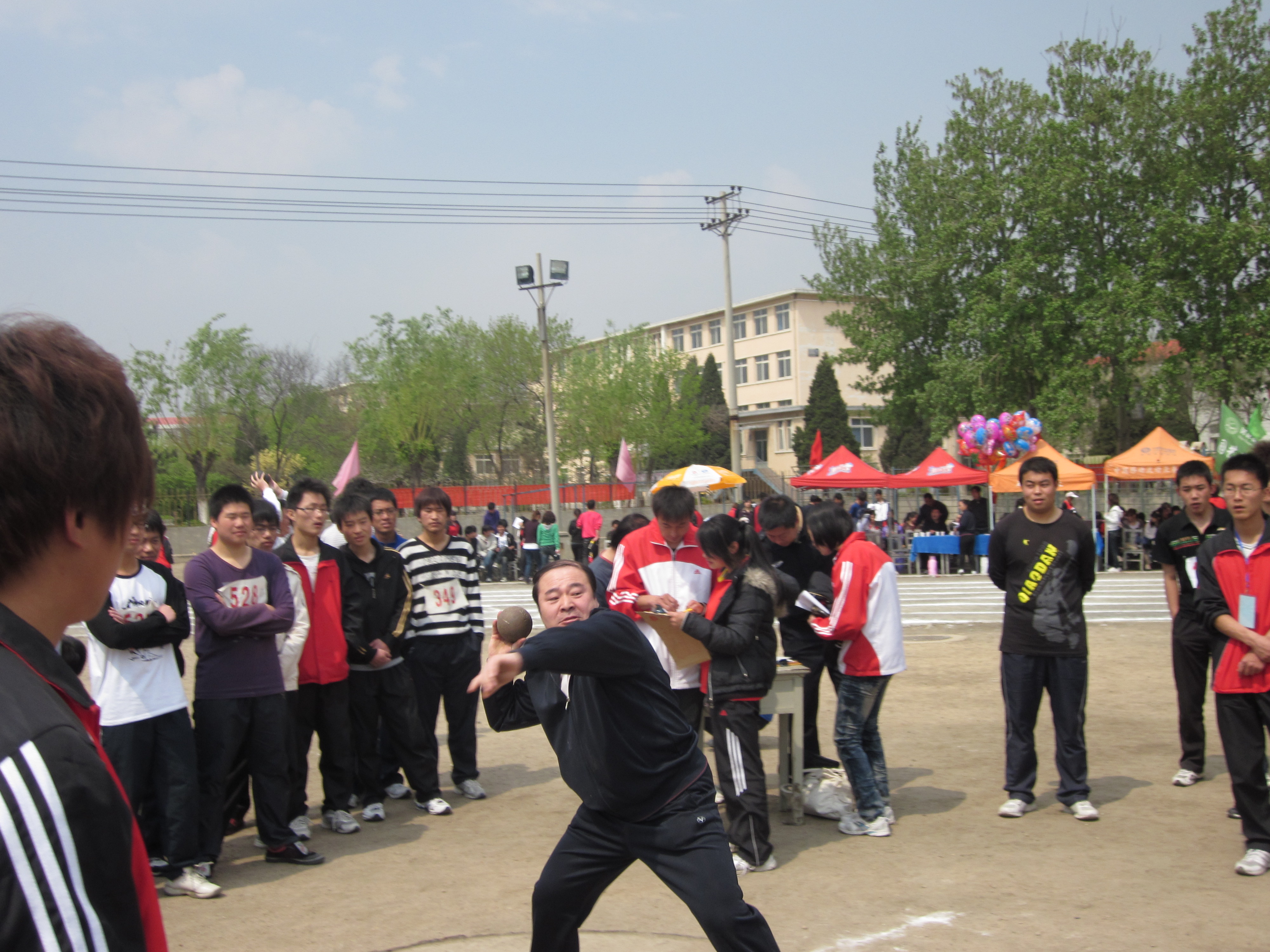 图为公司吴建华经理在参加铅球比赛现场