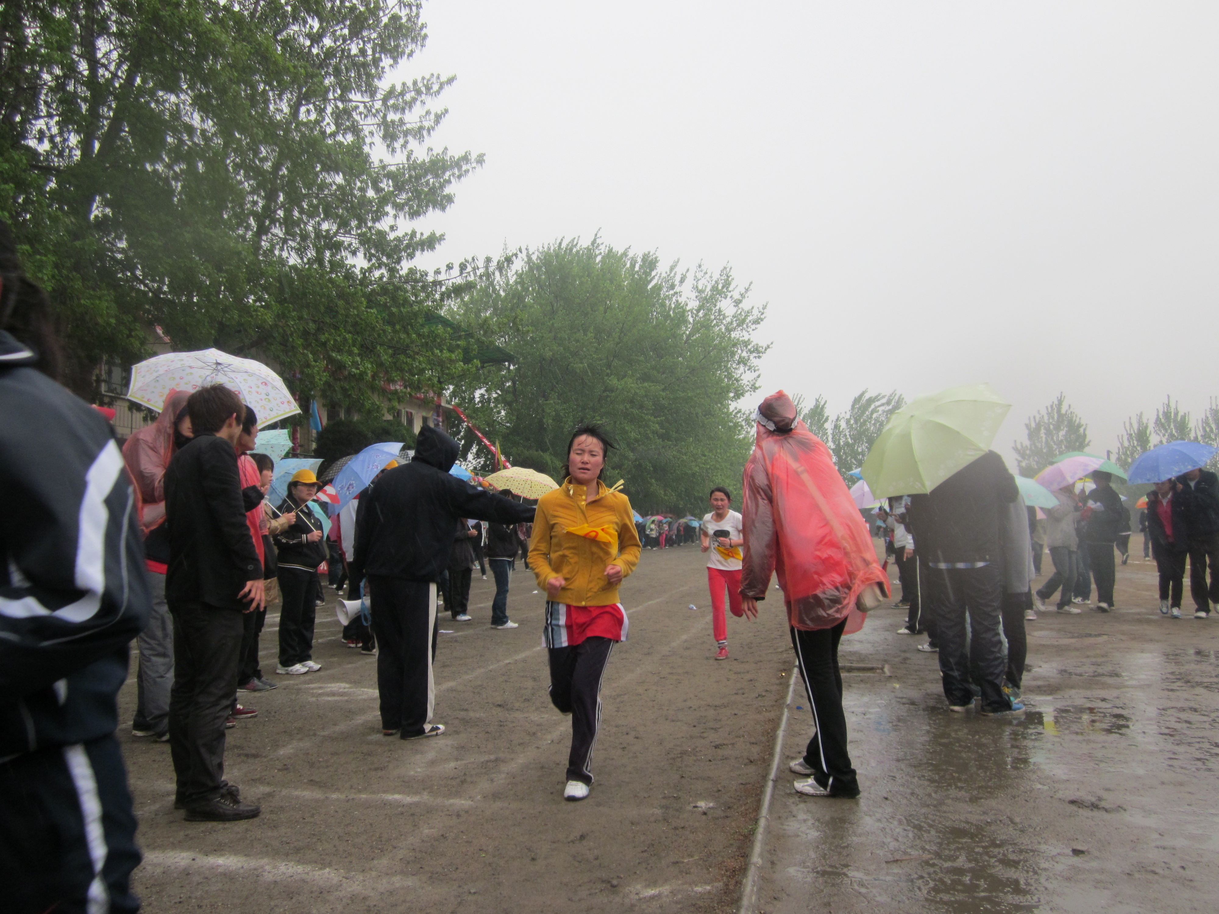 图为公司员工运动员冒雨参加长跑比赛