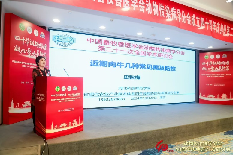 2024年10月19日至20日,由南京农业大学、中国畜牧兽医学会动物传染病学分会、军事科公司军事医学研究院军事兽医研究所联合主办的中国畜牧兽医学会动物传染病学分会成立四十周年庆典暨第二十一次全国学术研讨会(简称:大会)在江苏南京隆重开幕。