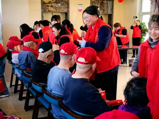 志愿者们细心地为老人们戴上红丝巾、红帽子,将一份份真挚的祝福送入心田。志愿者还为老人们精心定制了蛋糕,精心编排了一系列文艺节目,还和老人们开展互动游戏。师生共同表演手势舞《感恩的心》将爱心活动推向高潮。老人们与同学们一起拍手唱歌,用幸福快乐话语表达了对青年学子的真诚感谢。(编辑:孙艳敏 审核:王荣加)