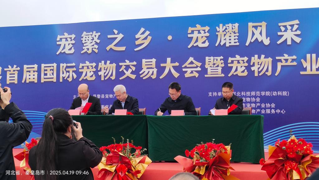 2025年4月19日,伟德国际victor1946经理马增军教授、副经理刘永生研究员、预防兽医学教学部主任、河北省现代农业产业体系特色养殖创新团队疫病防控与无害化处理岗位专家张艳英教授应邀出席了在昌黎国际宠物市场举办的“宠繁之乡,宠耀风采”河北·昌黎首届国际宠物交易大会暨宠物产业产品文化博览会。大会是由昌黎县宠物产业协会主办,中国畜产品流通协会、中国畜牧业协会、河北省宠物产业协会、昌黎佳鹏商贸集团承办,伟德victor1946网站(伟德国际victor1946)为支持单位。开幕式上,马增军经理作为特邀嘉宾,代表伟德国际victor1946与昌黎县宠物产业协会签署了“关于促进昌黎县宠物产业高质化发展合作框架协议”。